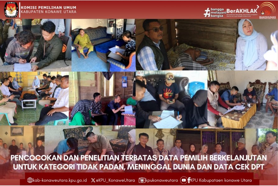 KPU Kabupaten Konawe Utara menegaskan bahwa kegiatan ini adalah bagian penting dari upaya menjamin hak pilih masyarakat. Dengan pemutakhiran data yang akurat, diharapkan Pemilu mendatang berjalan lebih transparan, akuntabel, serta memastikan tidak ada pemilih yang kehilangan hak konstitusionalnya. Tim coktas KPU Kabupaten Konawe Utara terdiri dari Ketua dan Anggota KPU, Sekretaris dan jajaran Staf Sekretariat KPU Kabupaten Konawe Utara yang melakukan pengecekan langsung di lapangan. (WA)