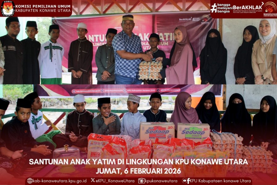Wanggudu, kab-konaweutara.kpu.go.id. Menyambut Bulan Suci Ramadan 1447 Hijriah, KPU Kabupaten Konawe Utara melaksanakan kegiatan Santunan dan Doa Bersama Anak Yatim, 6 Februari 2026 bertempat di Pesantren Hidayatul Qur’an Kabupaten Konawe Utara.