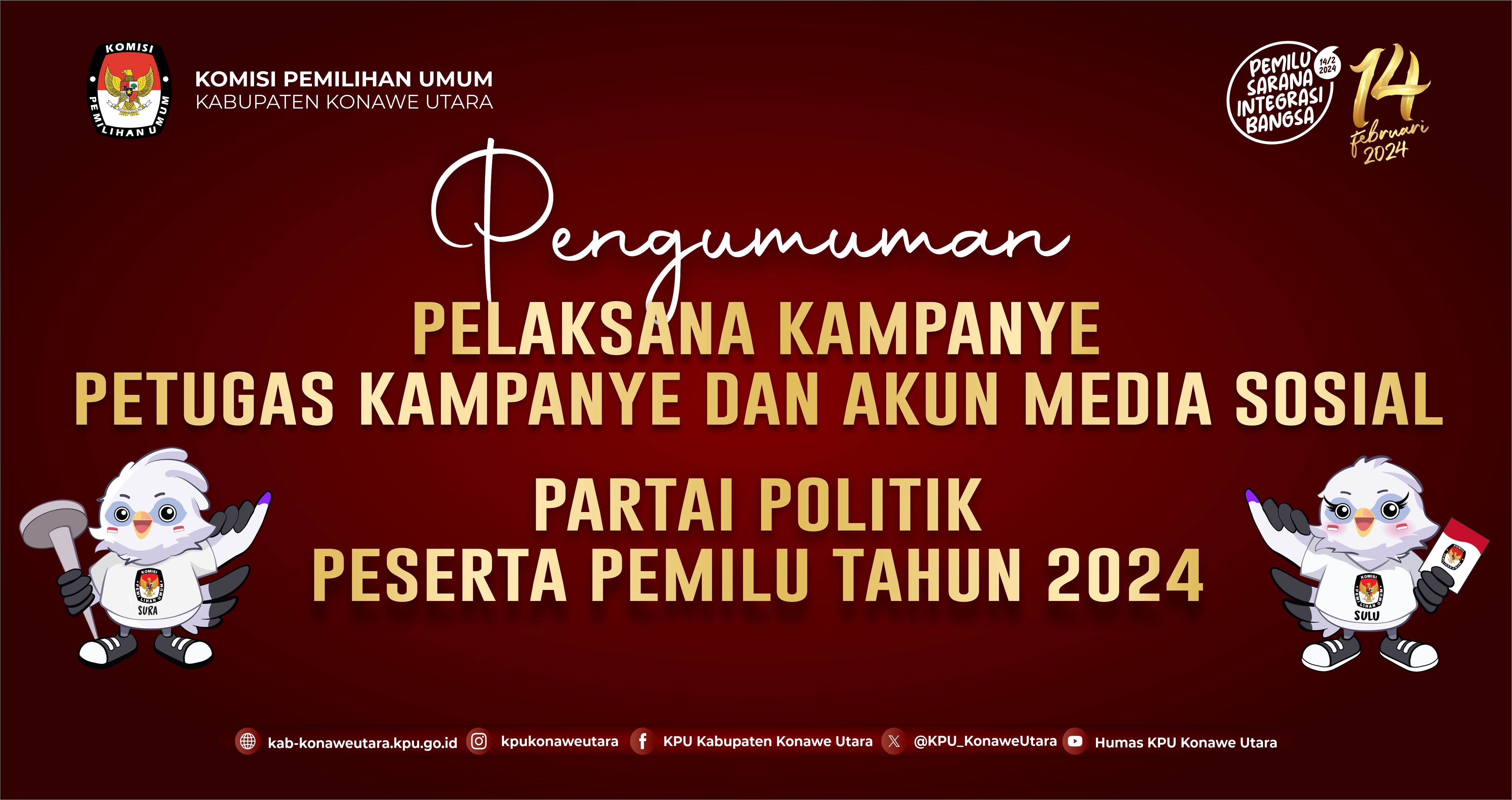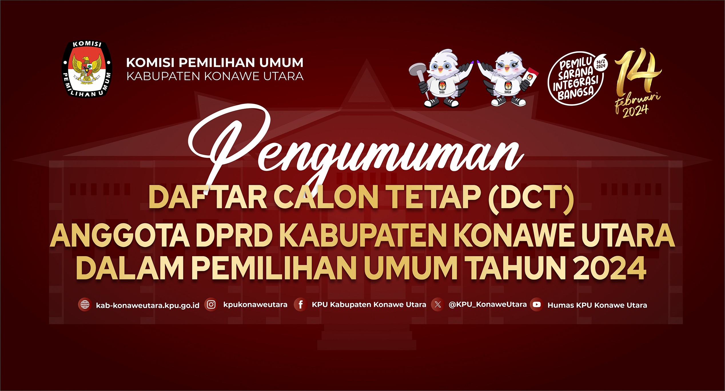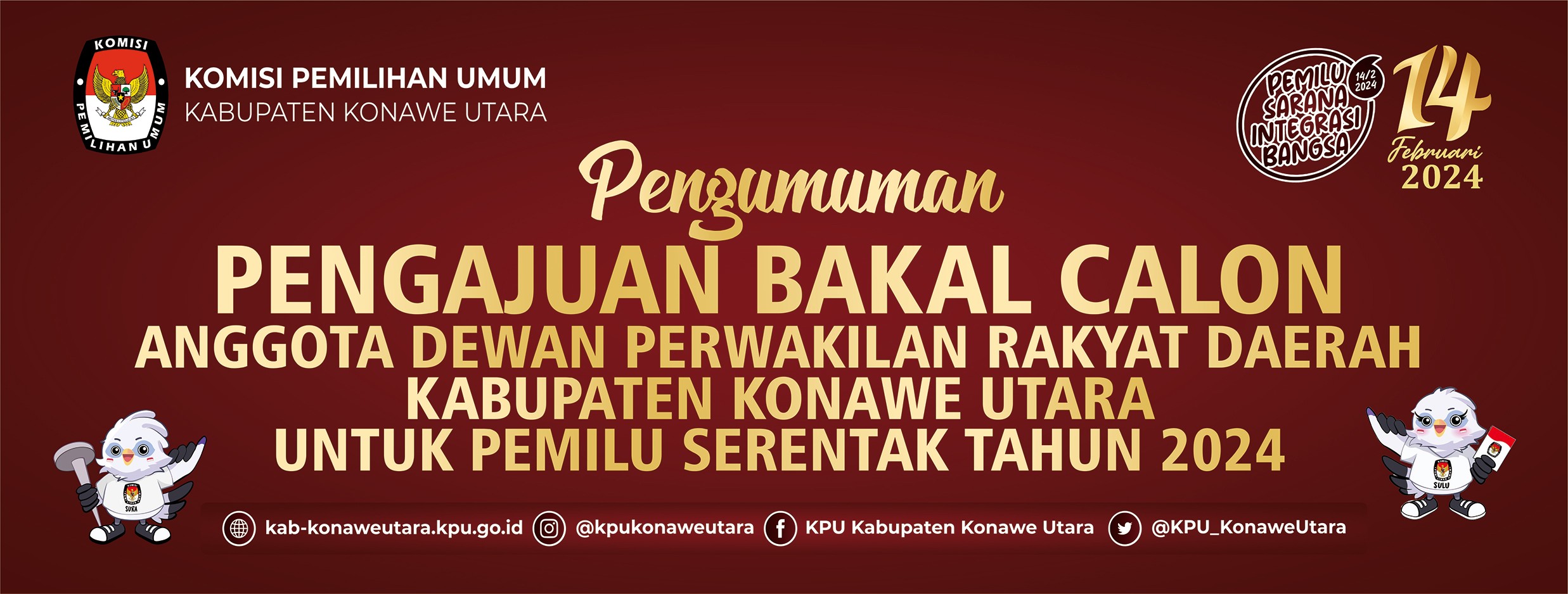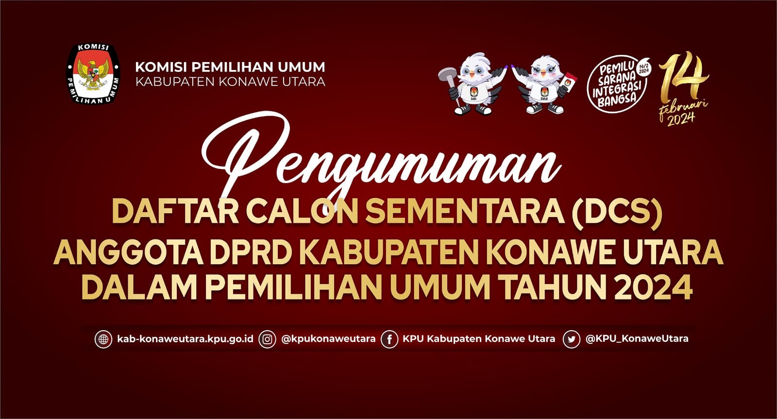 kab-konaweutara.kpu.go.id Wanggudu (19/8/2023) Bahwa untuk melaksanakan ketentuan Pasal 70 Peraturan KPU Nomor 10 Tahun 2023 tentang Pencalonan Anggota Dewan Perwakilan Rakyat, Dewan Perwakilan Rakyat Daerah Provinsi, dan Dewan Per-wakilan Rakyat Daerah Kabupaten/Kota, KPU Kabupaten Konawe Utara mengumumkan Daftar Calon Sementara (DCS) Anggota DPRD Kabupaten Konawe Utara dan persentase keterwakilan perempuan dalam Daftar Calon Sementara (DCS) sebagaimana terlampir. Berkenaan dengan hal tersebut, sesuai dengan ketentuan Pasal 71 Peraturan KPU Nomor 10 Tahun 2023 tentang Pencalonan Anggota Dewan Perwakilan Rakyat, Dewan Perwakilan Rakyat Daerah Provinsi, dan Dewan Perwakilan Rakyat Daerah Kabupaten/Kota, bahwa masyarakat dapat menyampaikan masukan dan tanggapan terhadap calon sementara Anggota DPR, DPRD provinsi, dan DPRD kabupaten/kota yang tercantum dalam Daftar Calon Sementara (DCS) dari tanggal 19 - 28 Agustus 2023. Untuk mendapatkan masukan dan tanggapan Masyarakat, memperhatikan hal-hal tersebut: I. Masukan dan tanggapan masyarakat disampaikan secara tertulis terkait dengan pemenuhan persyaratan administrasi bakal calon anggota DPR, DPRD Provinsi dan DPRD Kabupaten/ Kota; 2. Masukan dan tanggapan masyarakat disertai dengan bukti identitas diri dan bukti yang relevan kepada KPU Kabupaten Konawe Utara melalui: