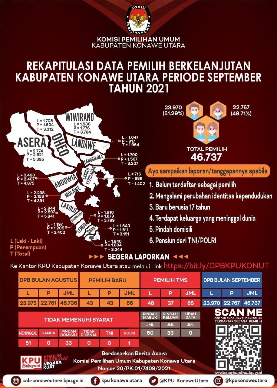 DPB Konawe Utara Periode September 2021 Minggu, 03 Oktober 2021 00:00 122 Infografis Rekapitulasi Data Pemilih Berkelanjutan Kabupaten Konawe Utara Periode September 2021 Baca Selengkapnya